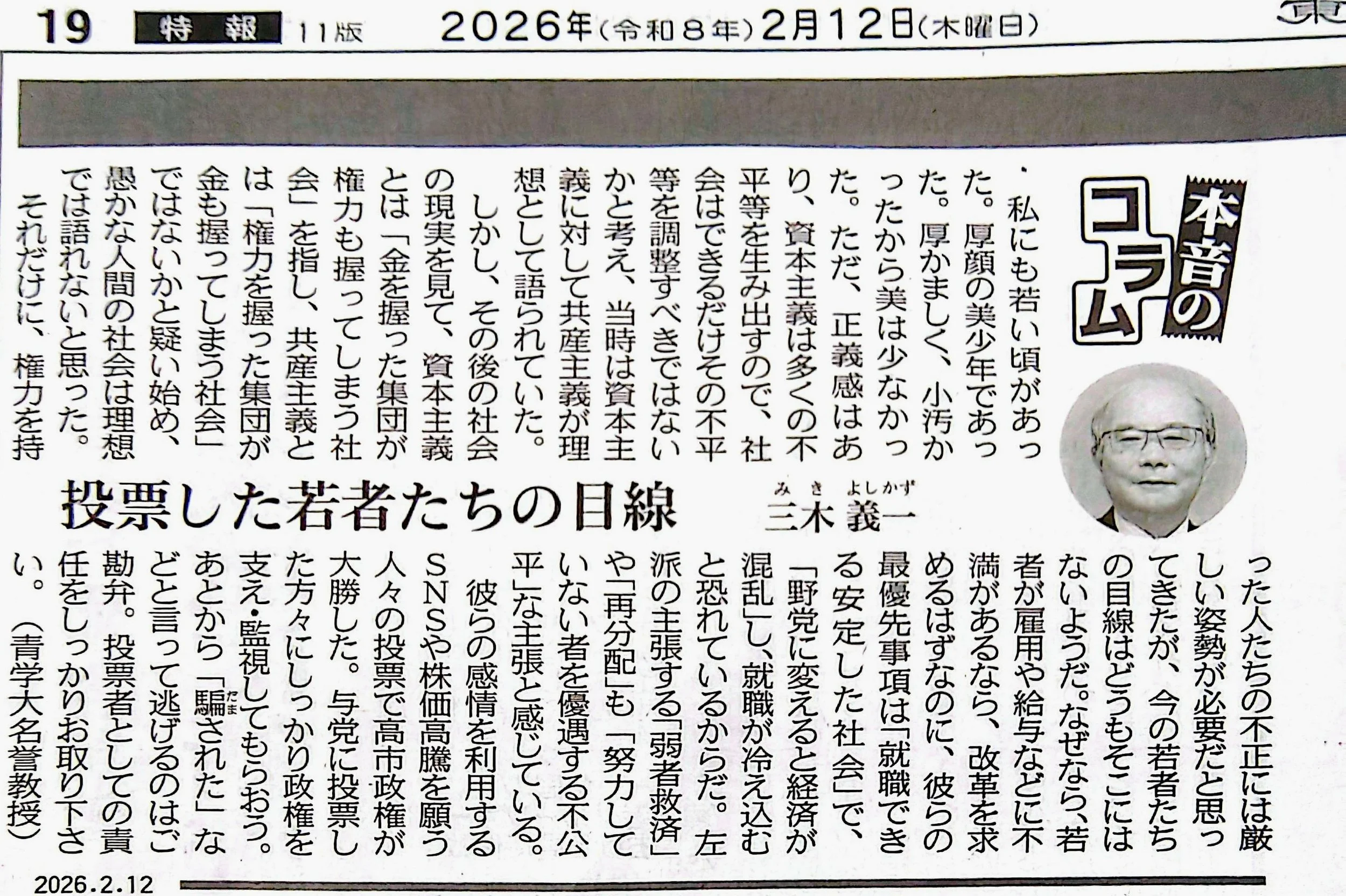 ※4:投票した若者たちの目線 三木義一(青山学院大名誉教授)(東京新聞)